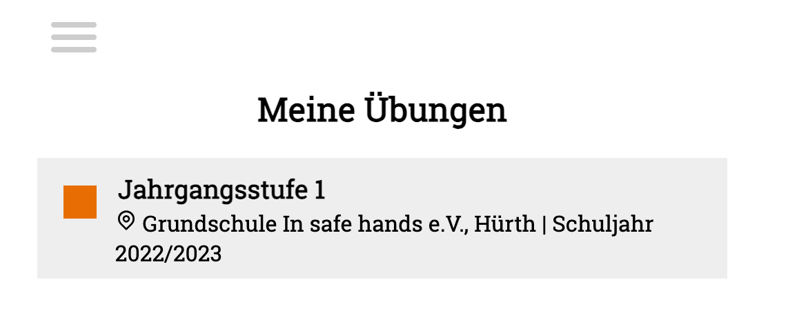 Die erste Unterseite des Menüpunkts „Übungen” ist überschaubar. Sie zeigt dir an, mit welchen Jahrgangsstufen du im aktuellen Schuljahr BUNTER BALL umsetzt. Mit Klick auf das graue Kästchen wanderst du in der Seitenhierarchie weiter und kommst auf die „Jahrgangsstufen”-Unterseite.