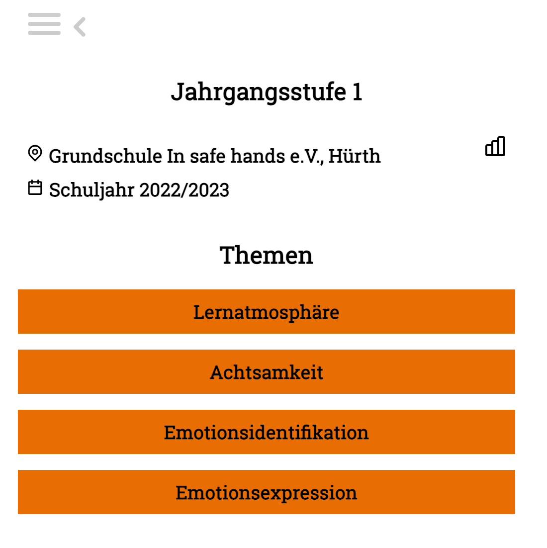 Die Jahrgangsstufen-Seite ermöglicht dir einen Überblick über alle Themen, die im Rahmen der Jahrgangsstufe 1 behandelt werden.